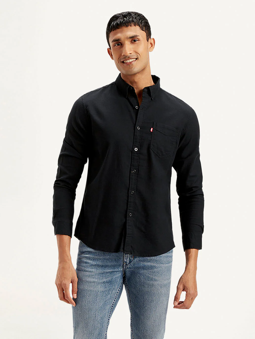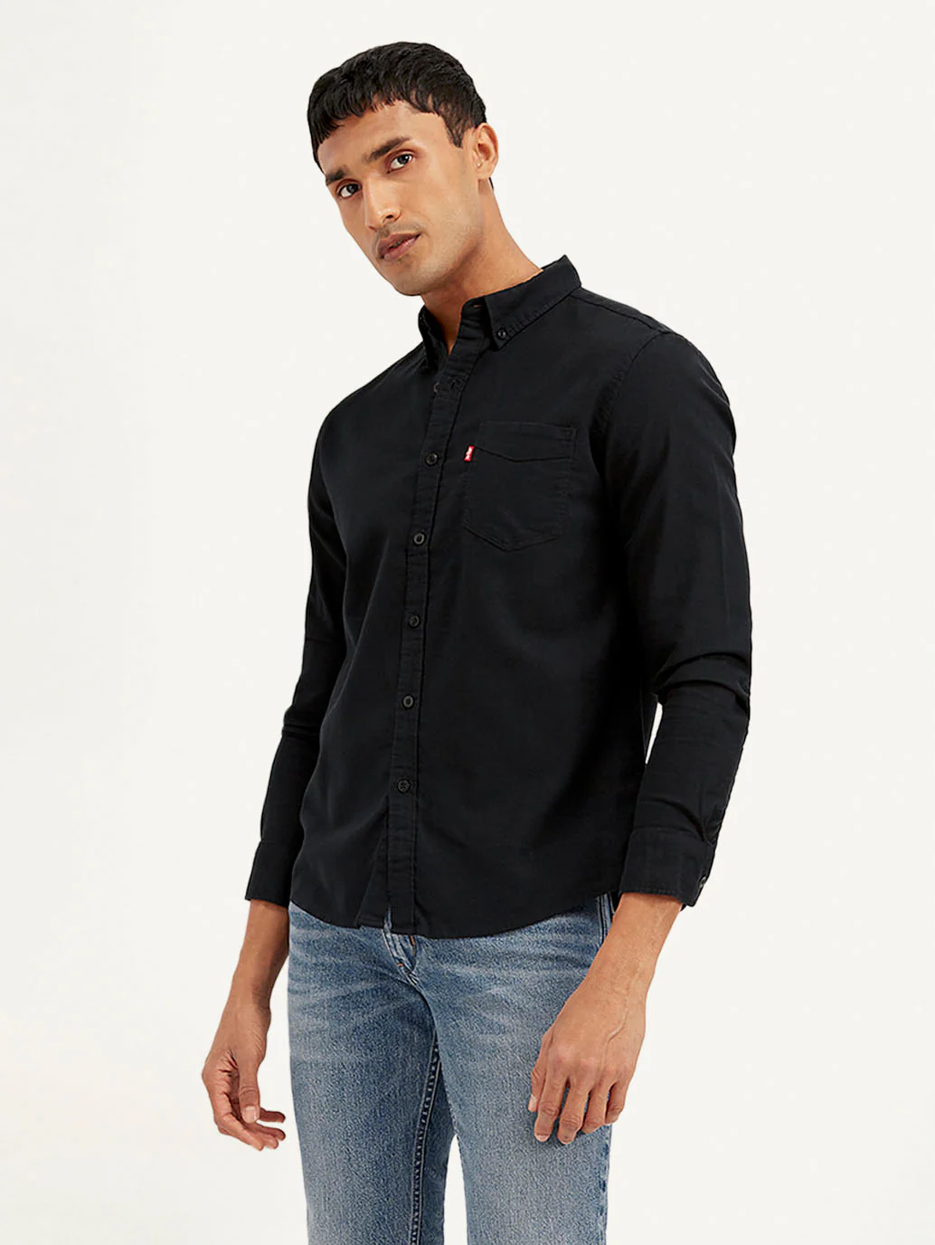 Black self design Casual shirt ,has a spread collar, Long Sleeves